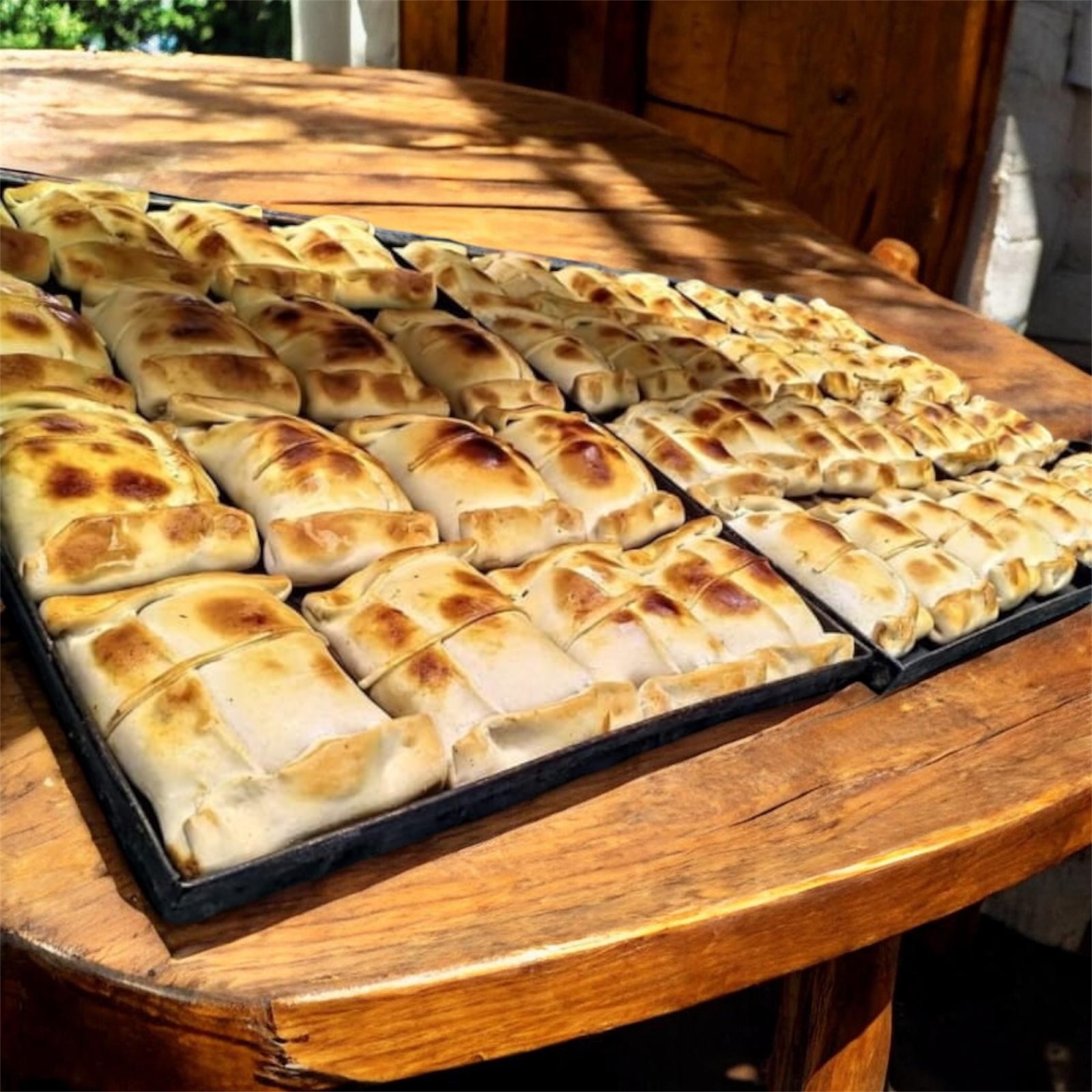Empanadas de masa artesanal, horneadas y listas para servir en cualquier momento.